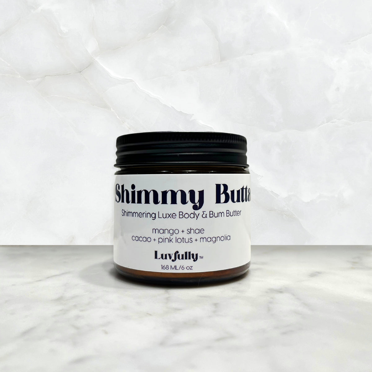 Give your body an all over shimmering glow with Shimmy Butta™, Body & Bum Shimmering Butter, hydrating yourself with the finest blends of butters and Cacao, Pink Lotus and Magnolia. Get nutty in your love-your-body era.